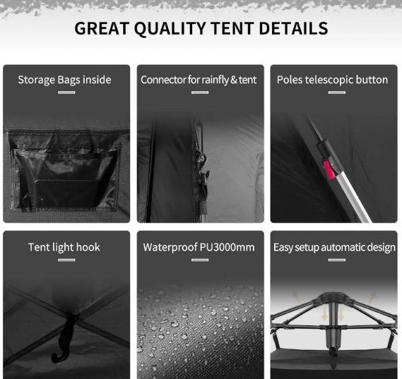 ابعاد باز شده این چادر 210*210*160 سانتی متر می باشد.