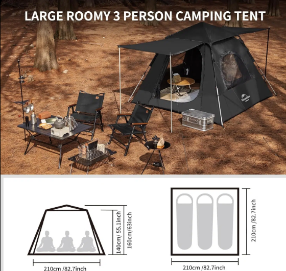 3 نفره مشکی نیچرهایک | Naturehike UPF50+ Ango tent 3